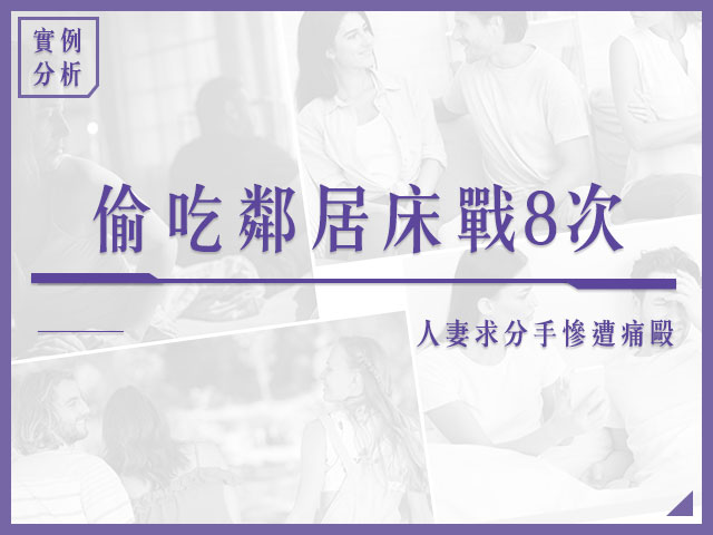 新北市一名人妻小美(化名)鼻青臉腫回家,被丈夫追問,她吐實與戴姓鄰居偷情,兩人還曾共遊香港與高雄,因為提分手遭對方毆打,戴男還恫嚇要在小美工作的臉書社團,散布兩人的性愛影片,小
