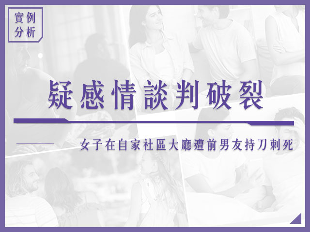 台中東區發生疑似情殺案,34歲張姓男子預藏刀械,到東區十甲路找同為34歲的陳姓前女友,兩人在社區大廳內談判,不料,僅約10分鐘,張男突然持刀刺入陳女胸口,之後騎乘機車逃逸無蹤,